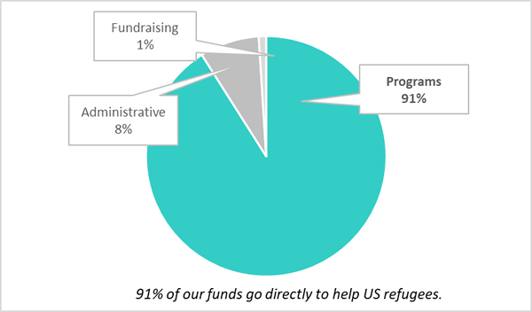 Your donation is tax deductible to the fullest extent allowed by law. Up to 91% of funding goes directly to help refugee families.